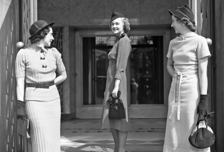 1930’lar ekonomik buhran yılları olsa da moda, Hollywood’un ihtişamlı yıldızlarından ilham aldı. Kadınlar için uzun ve zarif siluetler, vücuda oturan elbiseler ve omuzları belirginleştiren kesimler popülerdi. Saten ve ipek kumaşlar, akşam kıyafetlerinde tercih edilirken erkek modasında klasik takım elbiseler daha ince detaylarla yeniden yorumlandı. Bu dönemde moda, ekonomik sıkıntılara rağmen şıklığı ve zarafeti ön plana çıkardı.