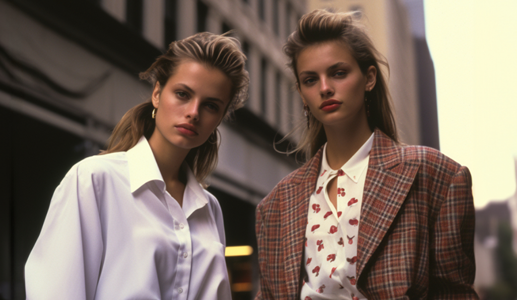 1980’ler, “power dressing” kavramının doğduğu yıllardı. Kadınlar iş hayatında güçlü bir imaj yaratmak için vatkalı ceketler, kalem etekler ve iddialı aksesuarlar kullandı. Neon renkler, taytlar ve spor giyim trendleri de bu dönemde yükseldi. Erkeklerde ise spor markalarının logolu ürünleri, deri ceketler ve bol kesimli pantolonlar öne çıktı.