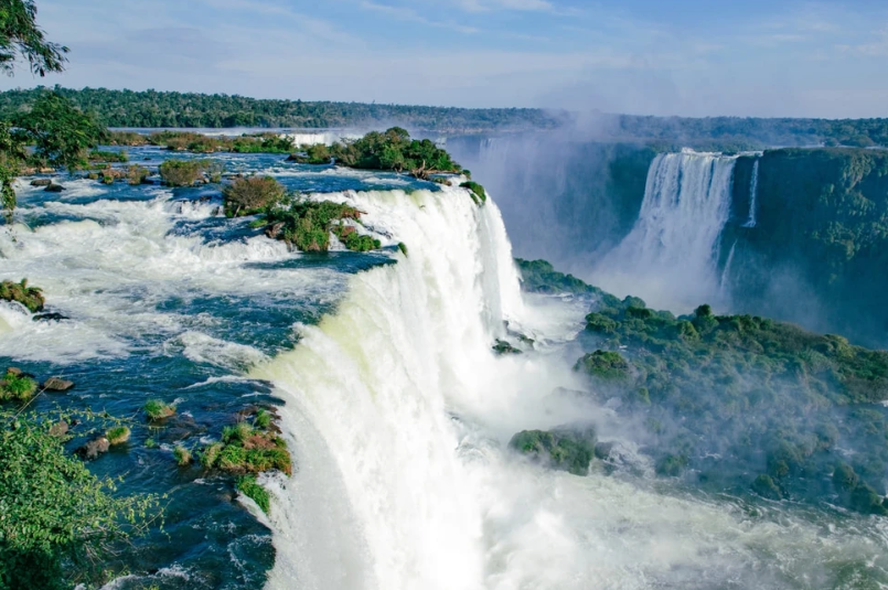 Brezilya ile Arjantin sınırında yer alan Iguazú, devasa su perdeleri ve çevresindeki subtropikal ormanlarla hem görsel hem işitsel bir şölen sunar; gözlem platformları ve yürüyüş yolları farklı açılardan şelaleyi deneyimleme fırsatı verir ve bölge ekoturizm aktiviteleriyle bilinir.