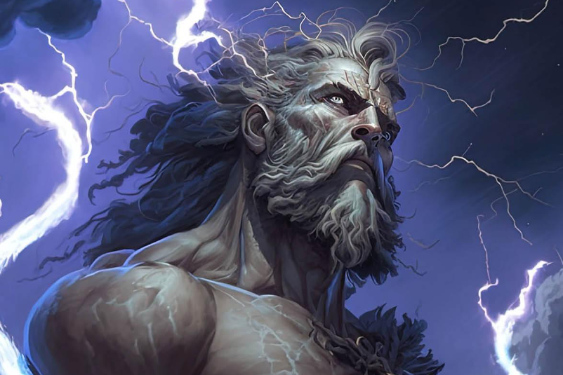 Zeus, tanrıların ve insanların en yüce hükümdarı olarak bilinir. Gökyüzünü denetler, şimşekleri elinde tutar ve adaleti sağlamak için onlara hükmeder. Olimpos Dağı’nda en yüksek tahtta oturan Zeus, kardeşleri Poseidon ve Hades ile dünyayı bölüştürmüş; bu paylaşım, denizlerin, yeraltı dünyasının ve göğün yönetimini simgeler. Efsanelerde ölümlülerle aşk ilişkileri ve çocukları aracılığıyla birçok kahramanın doğumuna aracı olmasıyla da öne çıkar.