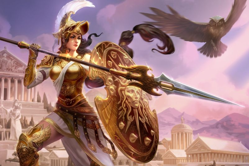 Athena, bilgelik, strateji ve zanaat tanrıçasıdır. Şehirlerin, özellikle de Atina’nın koruyucusu olarak öne çıkar; adını verdiği şehirde her yıl Panathenaia Festivali düzenlenirdi. Zırhı, mızrağı ve omuzuna konmuş baykuşuyla simgeleşen Athena, akıl yoluyla zafer kazanmanın sembolüdür. Efsanelerde cesur kahramanlara öğütler verir, zorlu bulmacaları çözmede ve stratejik savaş taktiklerinde rol oynar.