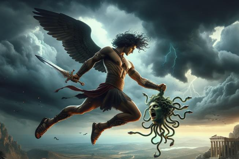 Perseus, Medusa’yı keserek hem ailesini hem de krallığını kurtaran cesur kahramandır. Akrabası Polydectes’in bileğini kıran kalkan ve kanatlı sandaletler gibi Athena ve Hermes’in yardımıyla efsaneleşir. Medusa’nın başını şimşekli bir kalkan üzerinde taşıyarak birçok düşmanı alt eder ve Andromeda’yı canavarlardan kurtararak gerçek aşkı bulur. Onun hikâyesi, akılcı strateji ve ilahi yardımın gücünü gösterir.