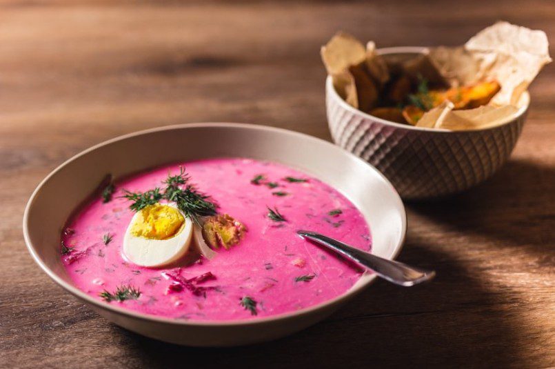 Litvanya’nın yaz aylarında vazgeçilmezi olan Šaltibarščiai, yoğurt veya kefir bazlı, pancar ile hazırlanan parlak pembe renkte bir çorbadır. Soğuk servis edilir ve genellikle haşlanmış patatesle birlikte sunulur. Bu çorba, Baltık mutfağının ferahlatıcı ve sağlıklı yönünü temsil eder. Rengi ve hafifliği sayesinde yaz sofralarının neşeli bir parçasıdır.