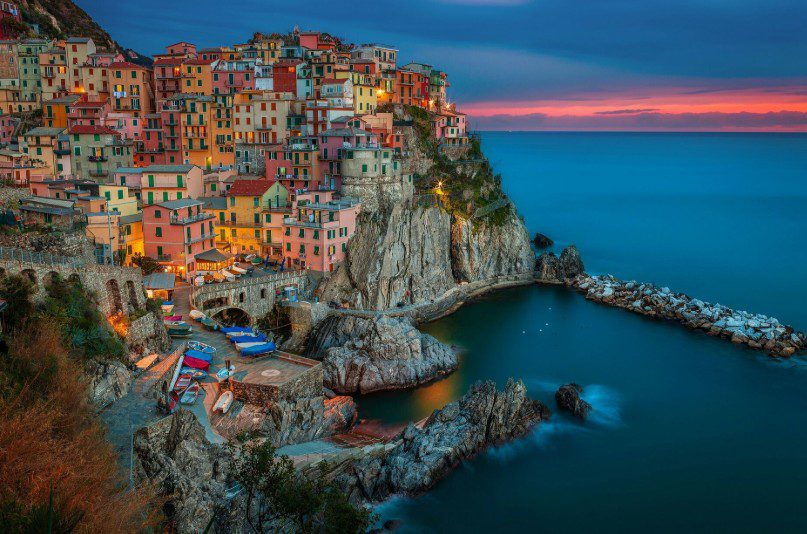 Liguria kıyılarında yer alan Cinque Terre, beş küçük kasabadan oluşan renkli bir sahil bölgesidir. Monterosso, Vernazza, Corniglia, Manarola ve Riomaggiore kasabaları, pastel tonlardaki evleriyle kayaların üzerine kurulmuş, Akdeniz’in büyüleyici manzarasını sunar. Burada sabahları dalga sesleriyle uyanırken, dar sokaklarda dolaşabilir, taze deniz ürünleriyle hazırlanmış İtalyan mutfağının tadını çıkarabilirsiniz. Özellikle Manarola’nın kayalıklarına vuran dalgalar, fotoğraf tutkunları için eşsiz kareler sunar.