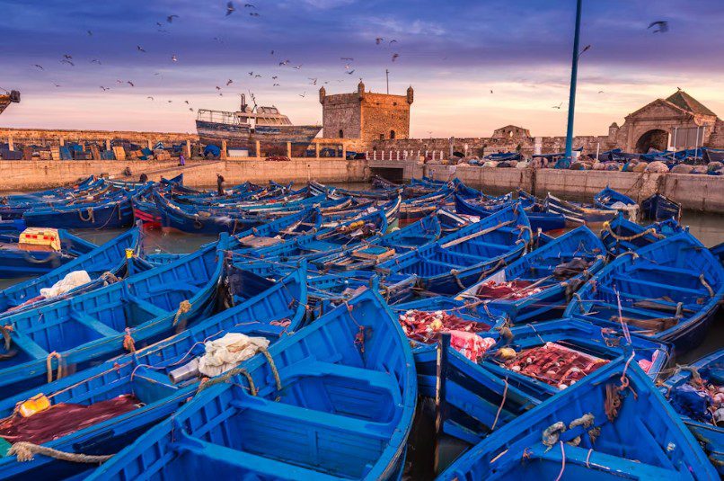 Atlantik kıyısında yer alan Essaouira, rüzgârın ve dalgaların şekillendirdiği bir sahil kasabasıdır. Tarihi surları, mavi-beyaz boyalı evleri ve balıkçı limanı ile otantik bir atmosfer sunar. Burada sabahları dalgaların sesiyle uyanırken, sahilde yürüyüş yapabilir, taze balıkların pişirildiği küçük lokantalarda kahvaltı edebilirsiniz. Essaouira aynı zamanda sanatçıların ve müzisyenlerin uğrak noktasıdır; kasabanın bohem ruhu dalgaların ritmiyle birleşir.