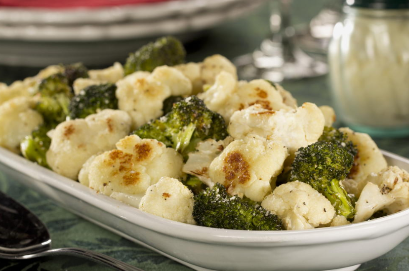Brokoli ve karnabahar, antioksidan sulforafan ve lif içeriğiyle karaciğeri destekler. Fırınlama işlemi, sebzelerin doğal tatlarını derinleştirirken yağ miktarını minimumda tutar.
