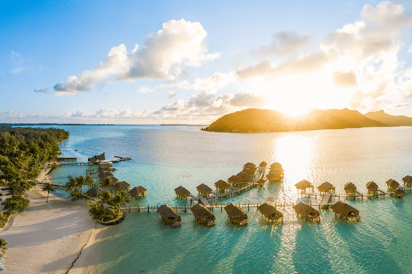 Pasifik Okyanusu’ndaki Bora Bora, turkuaz lagünleri ve palmiyelerle çevrili plajlarıyla gün batımını izlemek için tropik bir cennettir. Gün batımı sırasında gökyüzü altın ve mor tonlara bürünürken, okyanusun sakinliği romantik bir atmosfer yaratır.