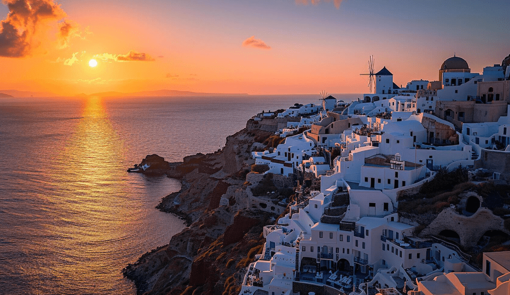 Ege Denizi’nin ortasında yer alan Santorini, beyaz boyalı evleri ve mavi kubbeleriyle gün batımının en çok aranan adreslerinden biridir. Özellikle Oia köyü, gün batımında adeta bir açık hava tiyatrosuna dönüşür; insanlar kaleye çıkan dar sokaklarda toplanır, gökyüzü turuncudan pembeye ve mora dönüşürken alkışlarla bu anı kutlar.