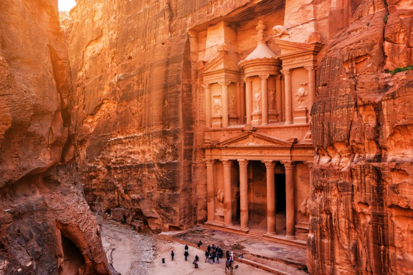 Ürdün’de kayalara oyularak yaratılan Petra, Nabatealılar’ın MÖ 4. yüzyılda kurduğu kadim capital kenti. “Gül Kenti” olarak da anılan bu yerleşimde, kaya cephesindeki anıtsal tapınaklar, su kanalları ve mezar odaları, ticaret yollarının kesiştiği stratejik bir noktada yükselir.