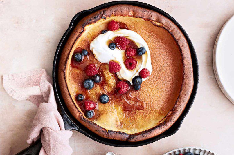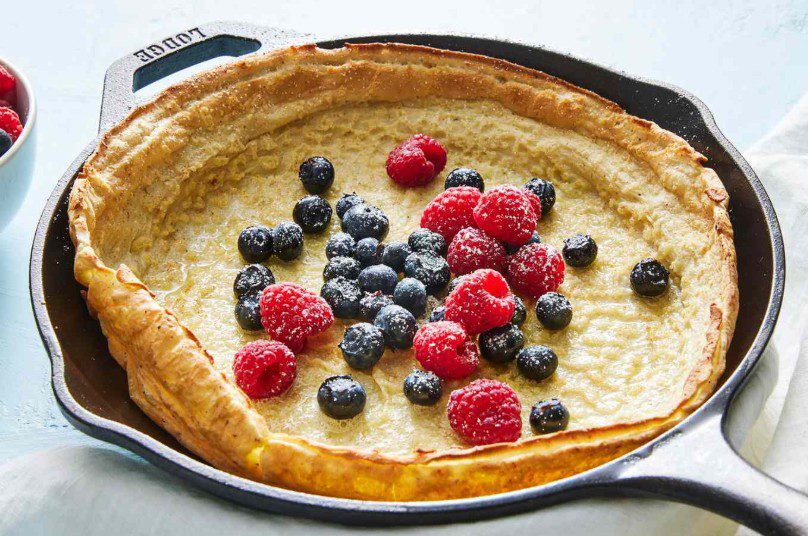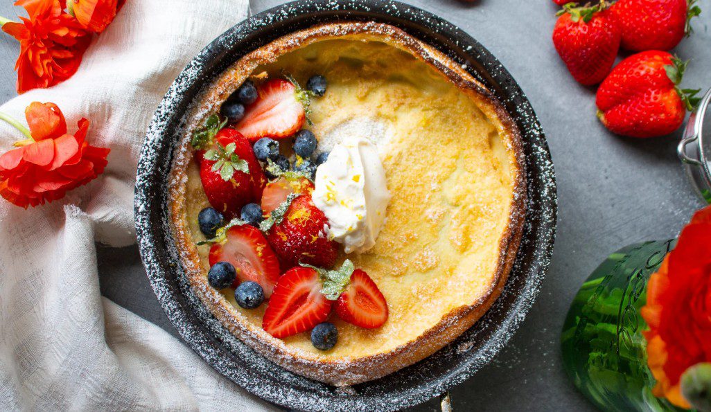 Dutch Baby Pancake, adının çağrıştırdığı gibi Hollanda mutfağına ait bir lezzet değil, aslında Almanya kökenli olup Amerika’da popülerleşmiş bir fırın pankek çeşididir. Klasik pankeklerden farklı olarak tavada değil, fırında pişirilir ve pişerken kabarıp kenarları kıvrılarak göz alıcı bir görünüm kazanır. Bu özelliğiyle tart ve pankek arasında bir lezzet sunar. Genellikle tatlı olarak hazırlanır; üzerine pudra şekeri serpilir, taze meyveler, reçel, bal veya çikolata sosuyla servis edilir. Ancak tuzlu versiyonları da yapılabilir; peynir, otlar veya füme etlerle zenginleştirilebilir. Az malzemeyle hazırlanması, pratikliği ve sofraya şıklık katması nedeniyle özellikle hafta sonu kahvaltılarında tercih edilen bir tarif haline gelmiştir. ABD’de kahvaltı restoranlarının vazgeçilmezlerinden biri olan Dutch Baby, Avrupa’da da giderek trendleşmektedir. Görünüşüyle misafirleri etkilemek, lezzetiyle damaklarda iz bırakmak isteyenler için hem kolay hem de gösterişli bir seçenek sunar.