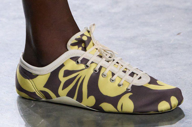 Fonksiyonelliğin karşısında estetik odaklı tasarımlar var. Prada, Bottega Veneta ve Givenchy, sivri burunlu topuklular, fiyonk detaylı ayakkabılar ve yüksek vamp kesimli tasarımlarla feminen şıklığı yeniden tanımlıyor. Dries Van Noten ise floral ve nakışlı ayakkabılarla romantik bir dokunuş sunuyor. Bu markalar için ayakkabı, kıyafetin tamamlayıcısı değil, başlı başına bir ifade aracı. Estetik trendler, özellikle özel davetlerde ve moda bilincine sahip kitlelerde güçlü bir tercih olarak öne çıkıyor.