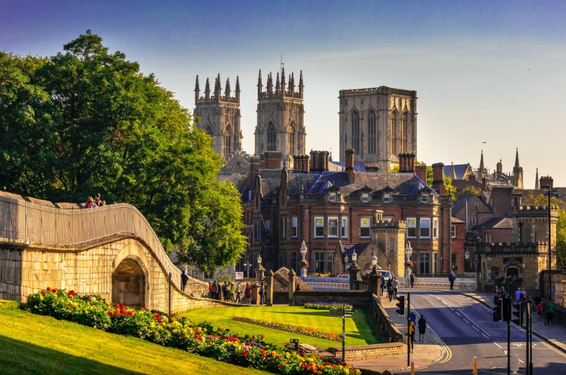 York, Orta Çağ dokusunu koruyan surları, dar taş sokakları ve görkemli katedraliyle tarihin canlı kaldığı bir şehirdir. York Minster’ın vitrayları ve gotik detayları, şehrin mimari ihtişamını sergiler. Dar beşik çatılı sokaklar, butik dükkanlar ve yerel pazarlar gezmeye değer atmosferler sunar.