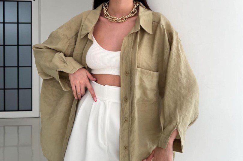 Yaz akşamlarında layering’in yıldızı, oversize gömlek + mini üst + ince blazer kombinasyonu. Blazer yerine keten overshirt, ince dokulu kimono veya hafif bir şal tercih etmek hem hareket özgürlüğü sağlıyor hem de stilin bütünlüğünü koruyor. Gömleklerin düğmelerini yarım açık bırakmak, omuzdan düşürmek veya içteki mini üstü görünür kılmak layering’e doğal bir akış katıyor. Bu teknik özellikle şehir içi yaz stilinde “çabasız ama derinlikli” bir görünüm yaratıyor.