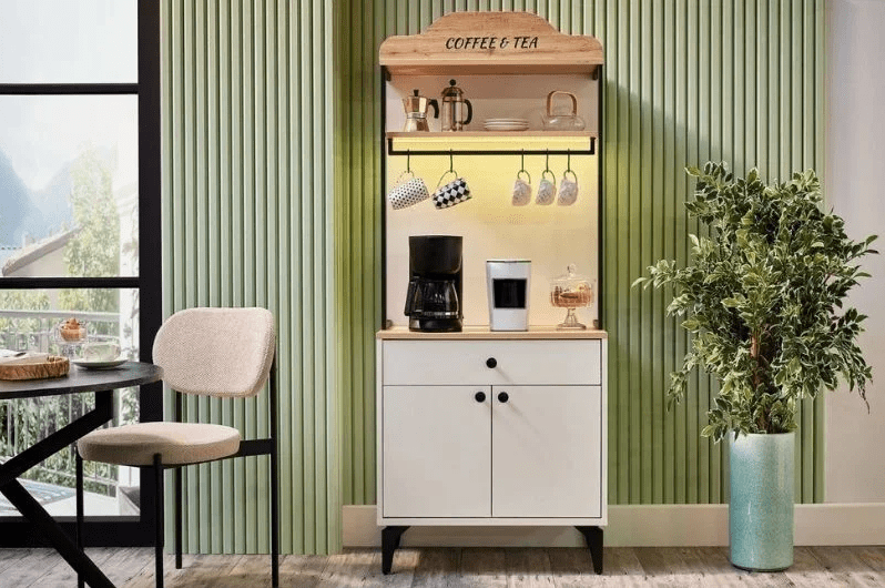 Bir kafe köşesi için öncelikle küçük ama işlevsel mobilyalar seçmek gerekir. Rahat bir koltuk veya sandalye, küçük bir masa ve birkaç raf, temel düzeni oluşturur. Masanın üzerine kahve makinesi, fincanlar ve küçük aksesuarlar yerleştirilebilir. Raflarda ise kitaplar, dergiler veya dekoratif objeler bulunabilir. Bu düzenleme, hem pratik hem de estetik bir görünüm sağlar.
