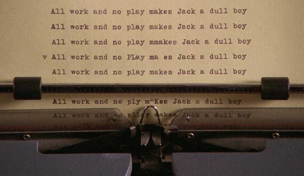 Kubrick’in uzun planlarında Wendy’nin yazma makinesinin etrafındaki daktilo kağıtları aslında filmin zaman döngüsünü ima eden notlar taşır. Arka plandaki bazı sayfalarda aynı cümlelerin tekrarlandığı, Jack’in akıl hırsızlığının görsel bir yankısı olduğu fark edilir.
