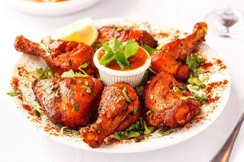 Tandoori chicken, yoğurt ve kırmızı biber, kimyon, kişniş gibi güçlü baharatlarla marine edilmiş tavuk parçalarının yüksek ısıda tandoor adı verilen kil fırında pişirilmesiyle elde edilen dumanlı, hafif kömür notalı ve dışı hafifçe kızarmış bir yemektir. Marine edilen etin içi sulu kalırken dışındaki baharatlı kabuk yoğun aroma verir ve genellikle limon, soğan ve naan ile servis edilir.