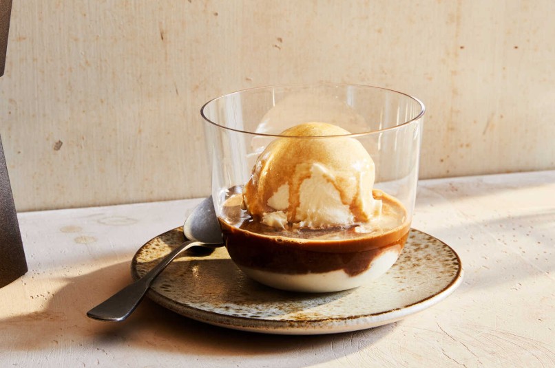 Yapılışı: Soğuk kahveyi geniş bir bardağa alın ve içine buz parçalarını ekleyin. Üzerine bir top vanilyalı dondurma koyarak kahvenin yoğun aromasıyla dondurmanın kremamsı dokusunu buluşturun. İsteğe göre çikolata sosu gezdirerek hem görsel hem de lezzet açısından zenginleştirin. Bu tarif, yazın sıcak öğleden sonralarında hem enerji verici hem de tatlı bir keyif sunar.