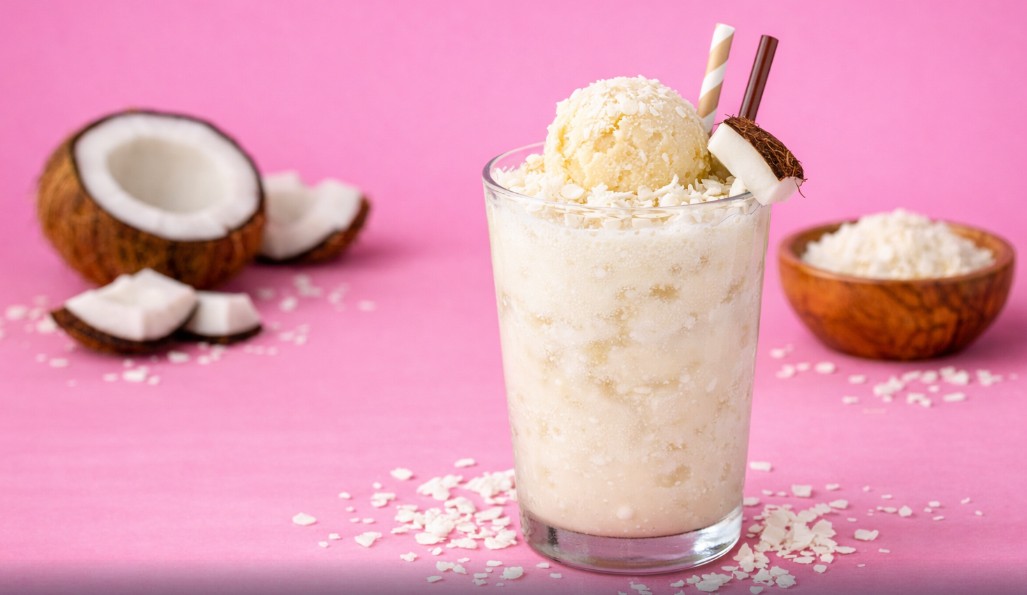 Yapılışı: Hindistan cevizi sütünü buzlarla birlikte blenderda karıştırın. Üzerine dondurma ekleyin ve bardakta servis edin. Üzerini hindistan cevizi rendesiyle süsleyerek tropikal bir dokunuş katabilirsiniz. Hafif ve aromatik yapısıyla yazın vazgeçilmez içecekleri arasında yerini alır.
