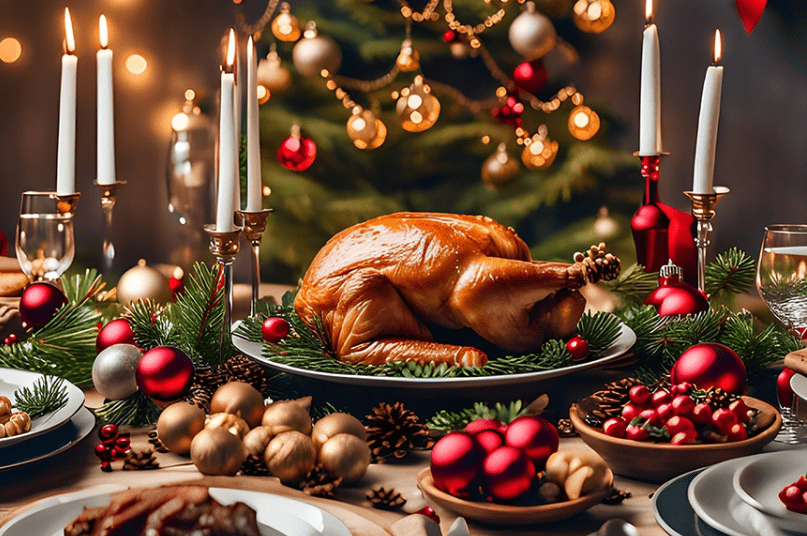 Yemekler kadar masa dekorasyonu da yılbaşı akşamının ruhunu yansıtır. Kırmızı ve altın tonlarında peçeteler, mumlar, çam dalları ve küçük süsler sofraya şıklık katar. Dekorasyonun özenle hazırlanması, yemeklerin lezzetiyle birleşerek unutulmaz bir atmosfer yaratır.