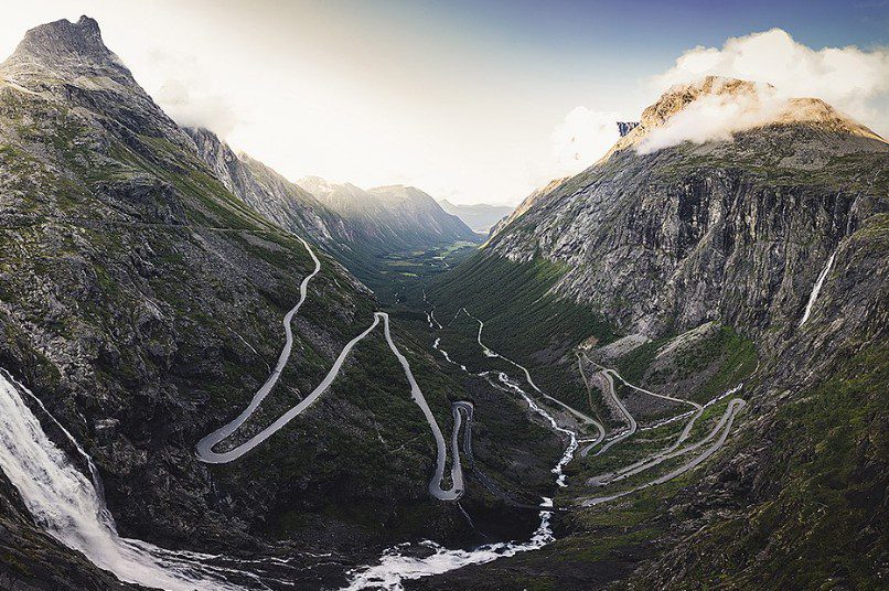 Norveç’in ünlü Trollstigen (Troll Yolu), dik yamaçları ve 11 keskin virajıyla sürücülere unutulmaz bir deneyim yaşatır. Yolun çevresinde şelaleler ve derin vadiler bulunur, bu da manzarayı dramatik hale getirir. Yaz aylarında turistlerin yoğun ilgisini çeken Trollstigen, doğayla bütünleşmiş bir mühendislik harikasıdır.